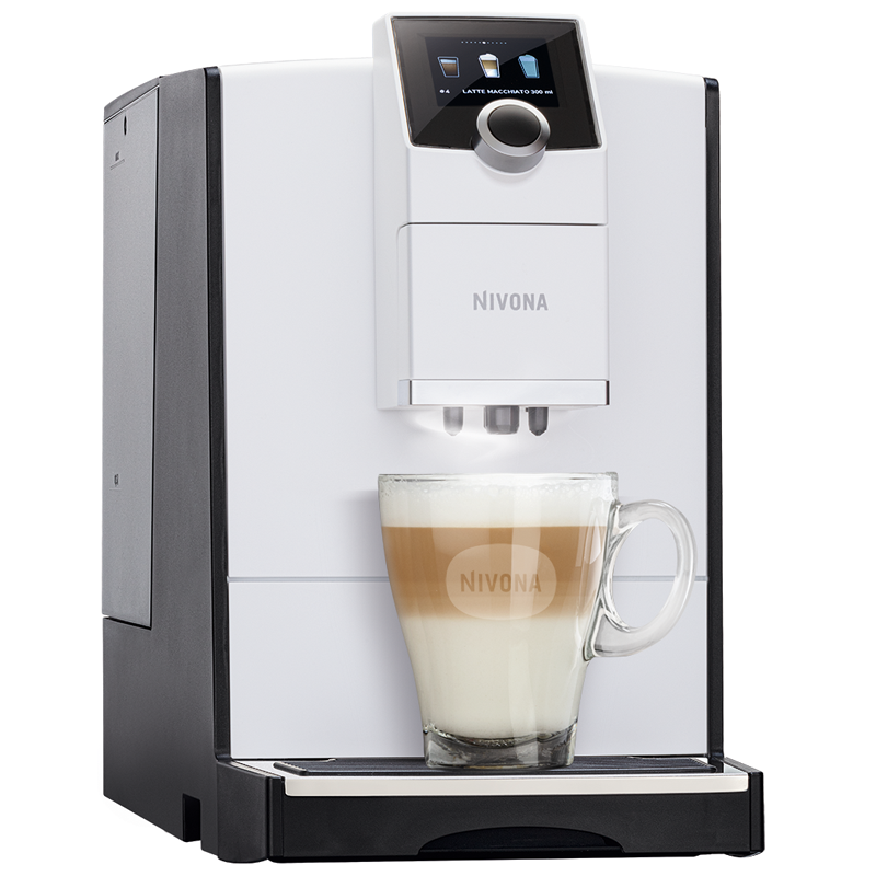 De Nivona Cafe Romatica 796 maakt met 1 druk op de knop de lekkerste espresso, koffie of melkdranken. De Nivona Cafe Romatica 796 is uitgevoerd in een slanke behuizing afgewerkt in wit met een fraai in mold design. Eenvoud siert de Cafe Romatica 796. Slechts 1 knop en een compact kleurendisplay vullen de voorzijde. Het ruime waterreservoir is gemakkelijk vanaf de zijkant uit te nemen. Dankzij de in hoogte verstelbare uitloop, kunt u verschillende maten porselein en glazen gebruiken. Dankzij deze ruime verstelbaarheid is het zelfs mogelijk een macchiato glas te gebruiken. De Nivona Cafe Romatica 796 heeft de volgende zaken extra ten opzichte van de 790; wit design front, wieltjes voor eenvoudige verplaatsing, koppenverlichting en extra stil maalwerk.